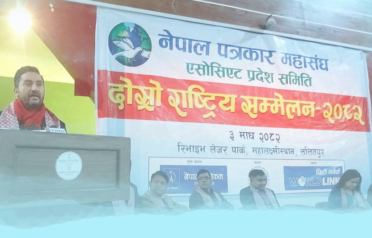 नेपाल पत्रकार महासङ्घ एसोसिएट प्रदेशको आयोजनामा आज ललितपुरको महालक्ष्मीस्थानमा भएको दोस्रो राष्ट्रिय सम्मेलनमा उहाँले सञ्चारकर्मीहरु हरेक क्षेत्रमा निपुण भएकाले अब बन्ने सरकारका पनि उनीहरुको प्रतिनिधित्व हुनुपर्ने बताउनुभयो ।